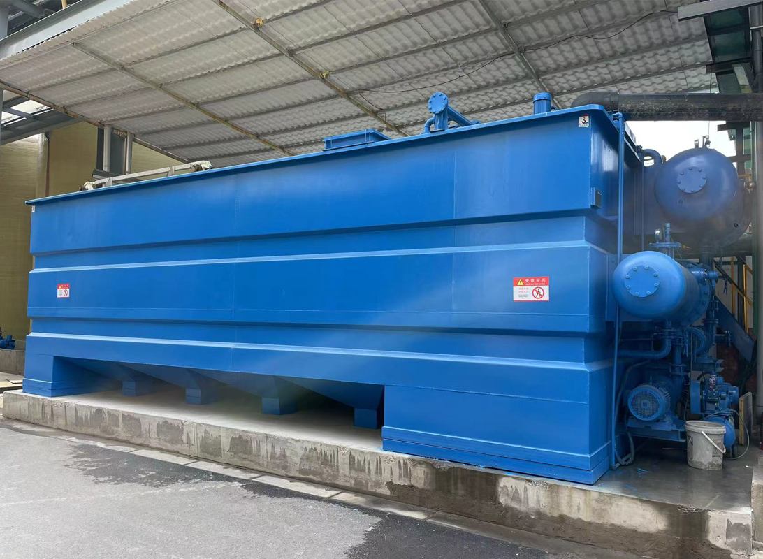 气浮在项目中用于废水排放末端把控,污水处理站将料液经过pH调节后,先混凝沉淀再使用气浮浮选,可以高效去除料液中大部分的氟离子,工艺流程简单、占地小、费用低。